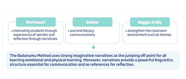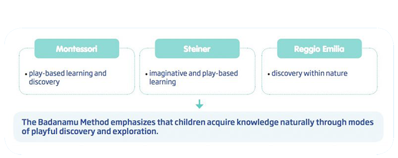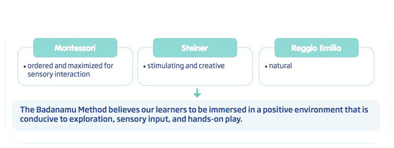 Our foundation for everything is emotional learning (helping children to engage naturally) and active learning (activating a child’s entire brain while they play). The teaching method that emerges draws on theories of multiple intelligence and neuroscience. Best practices are then adapted from leading educational approaches such as Montessori. The resulting classroom planning and curriculum is unique and innovative: The Badanamu Method.